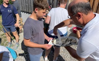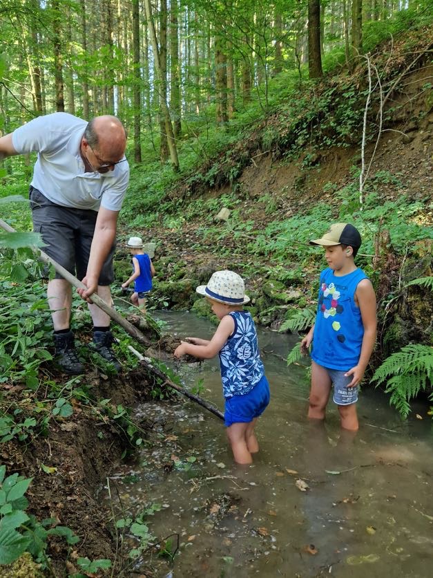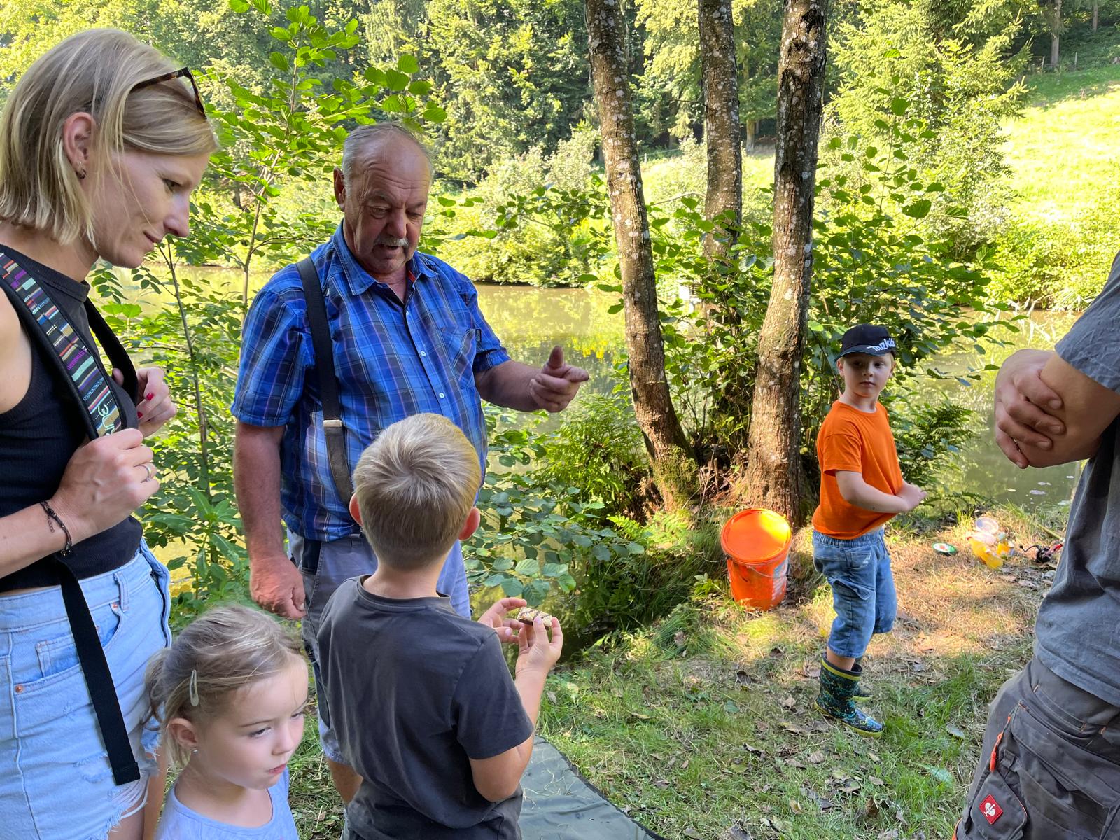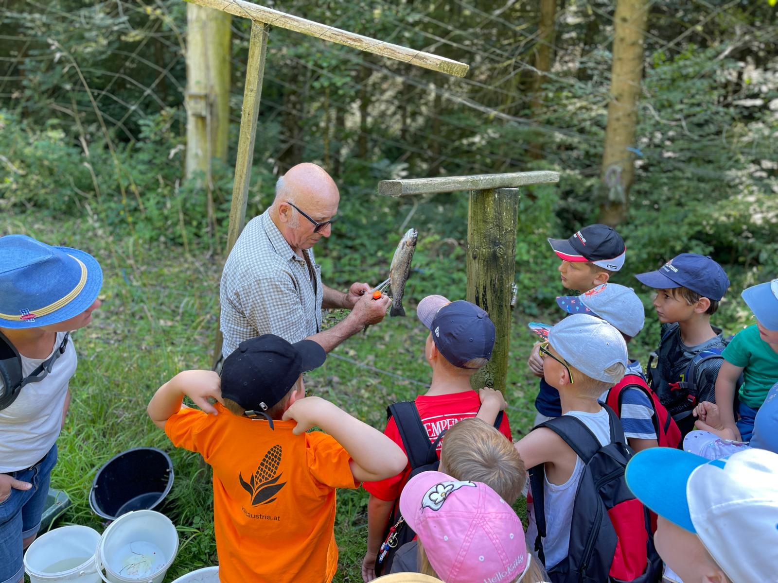 An die 50 Kinder mit ihren Eltern oder Großeltern waren beim Kinderferienspielangebot „Wasser.Erleben“ mit dabei. Damm bauen und Wasser stauen, ein kleines Wasserrad betreiben, selbst fischen und auch noch fische ausnehmen und dann verkosten und dazu ein „Steckerlbrot“ essen, das waren viele Eindrücke für die Kinder. Herzlichen Dank besonders an die Familie Tüchler/Pressl für die freundliche Aufnahme und alle Vorbereitungen am Kollmitzberg und Danke auch an die Angler Karl Plösser und Anton Tagwerker und allen, die direkt oder indirekt mitgeholfen haben.
