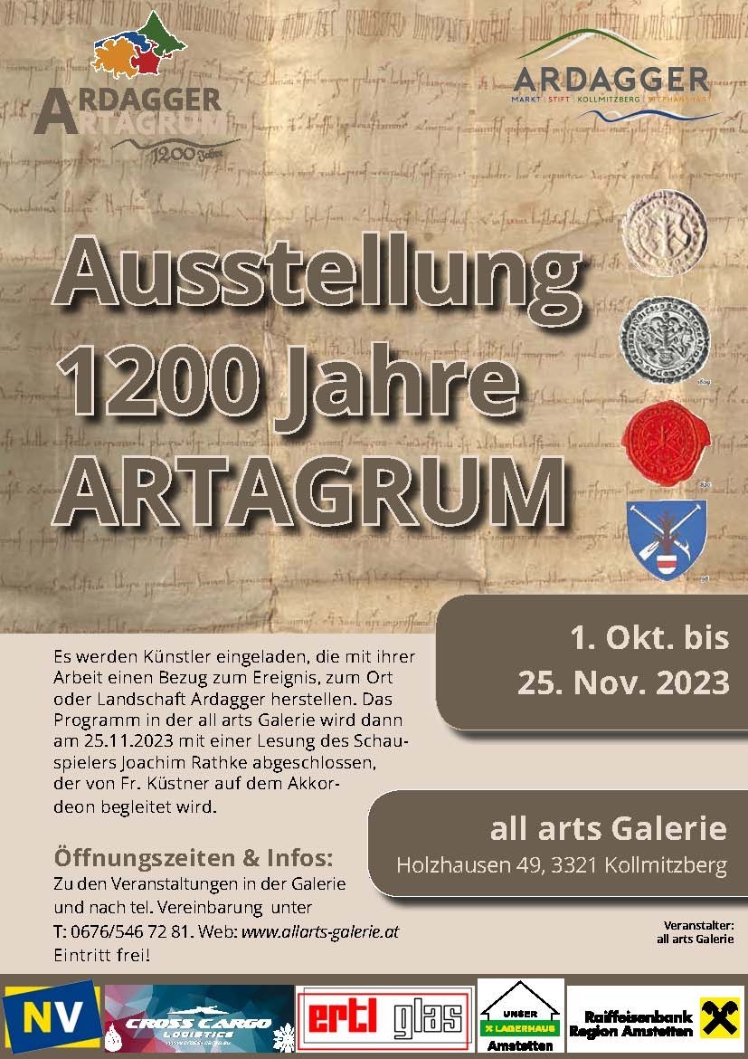 Es werden Künstler eingeladen, die mit ihrer Arbeit einen Bezug zum Ereignis, zum Ort oder Landschaft Ardagger herstellen. Das Programm in der all arts Galerie wird dann am 25.11.2023 mit einer Lesung des Schauspielers Joachim Rathke abgeschlossen, der v