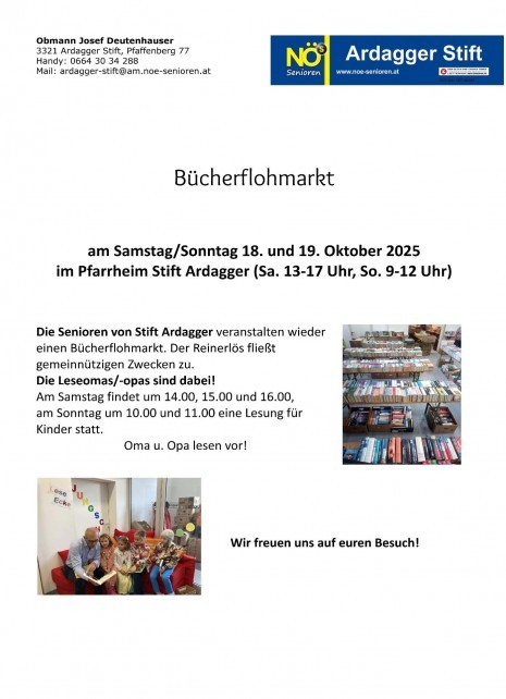 Die Senioren von Stift Ardagger veranstalten wieder einen Bücherflohmarkt. Der Reinerlös fließt gemeinnützigen Zwecken zu.
