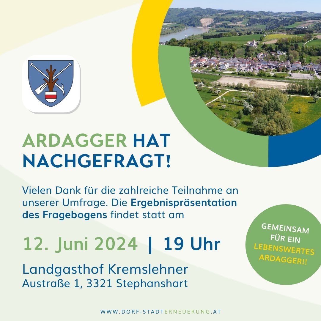 Über 600 Personen haben den Fragebogen ausgefüllt. Fast 400 wurden vollständig ausgefüllt. Neben den Fragebeantwortungen wurden auch fast 2000 freie Antworten gegeben. Und da ist viel Interessantes, Neues und auch Unvermutetes dabei. Es erwartet Dich bei der Präsentation also ein spannender Abend mit einem umfassenden Blick auf unsere Gemeinde Ardagger und unsere Katastralgemeinden aus Sicht der Bürgerinnen und Bürger.