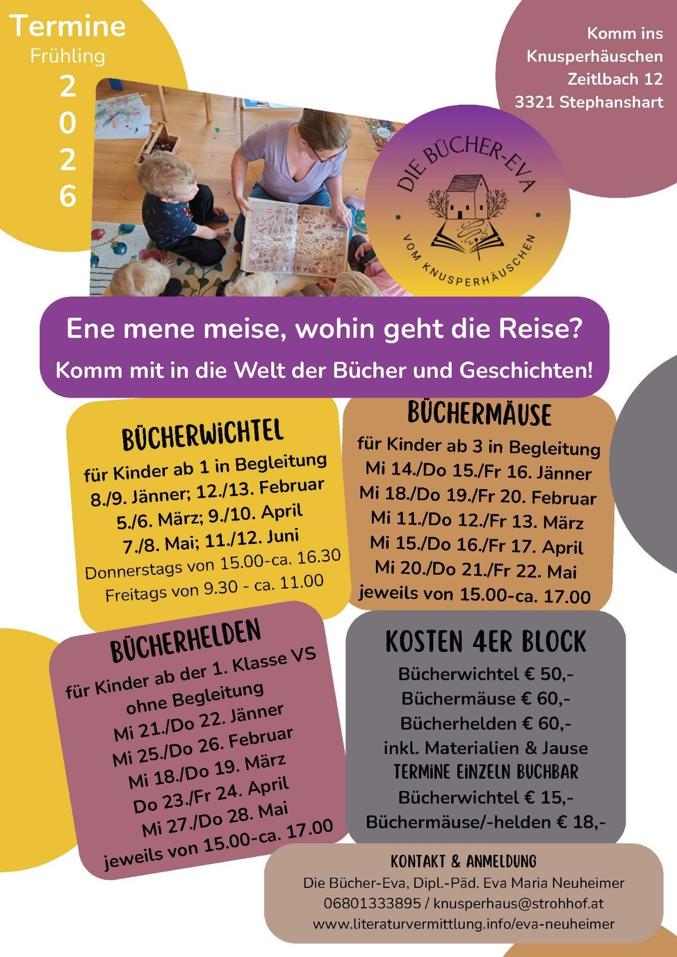 Ich tauche mit euch in Geschichten ein, transferiere sie in die Lebenswelt der Kinder und biete Möglichkeiten und Anregungen zur eigenständigen Auseinandersetzung mit Kinderliteratur. In meinem Knusperhäuschen erleben wir Geschichten ganzheitlich und beschäftigen uns spielerisch und kreativ mit Sprache und Illustration.