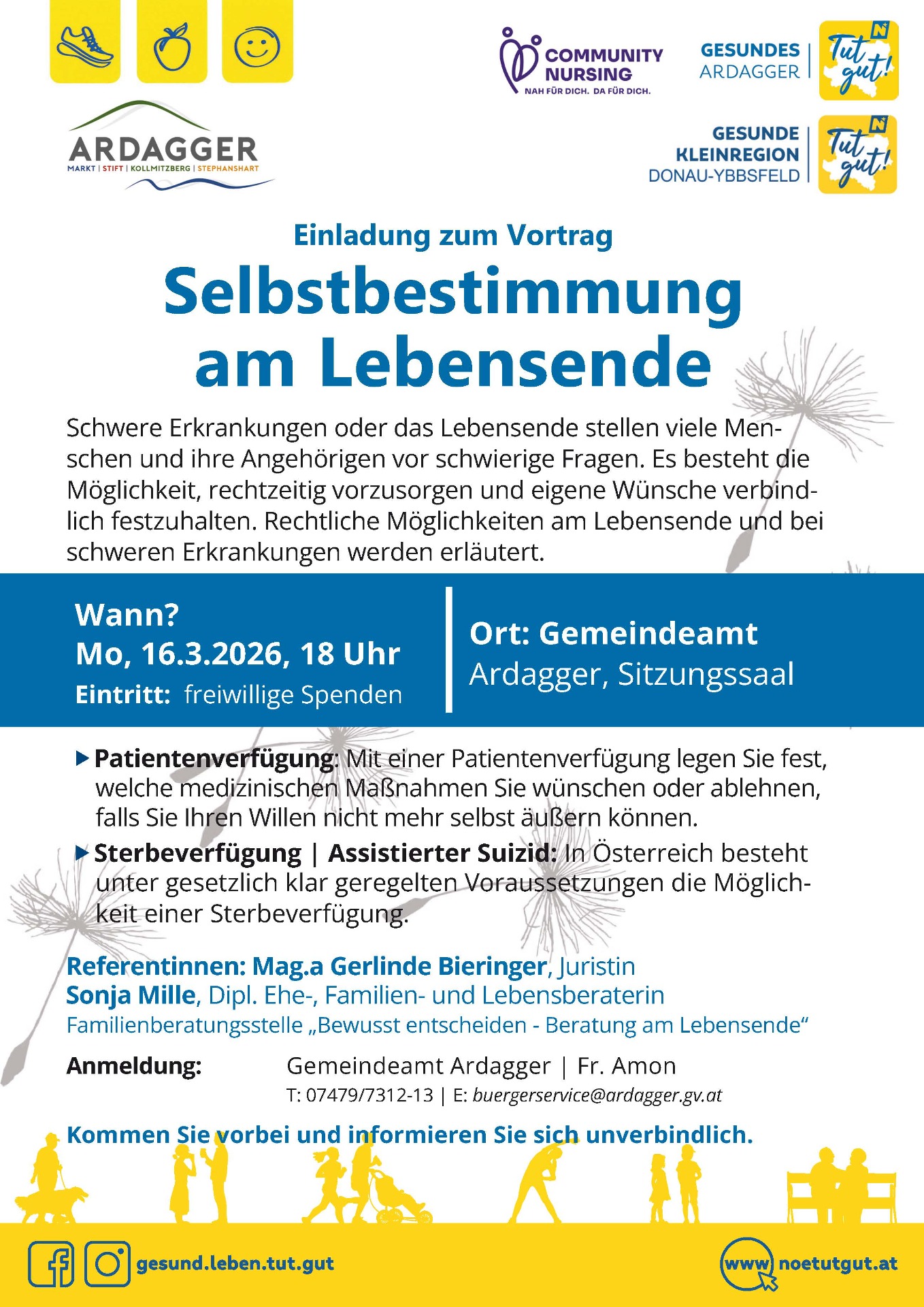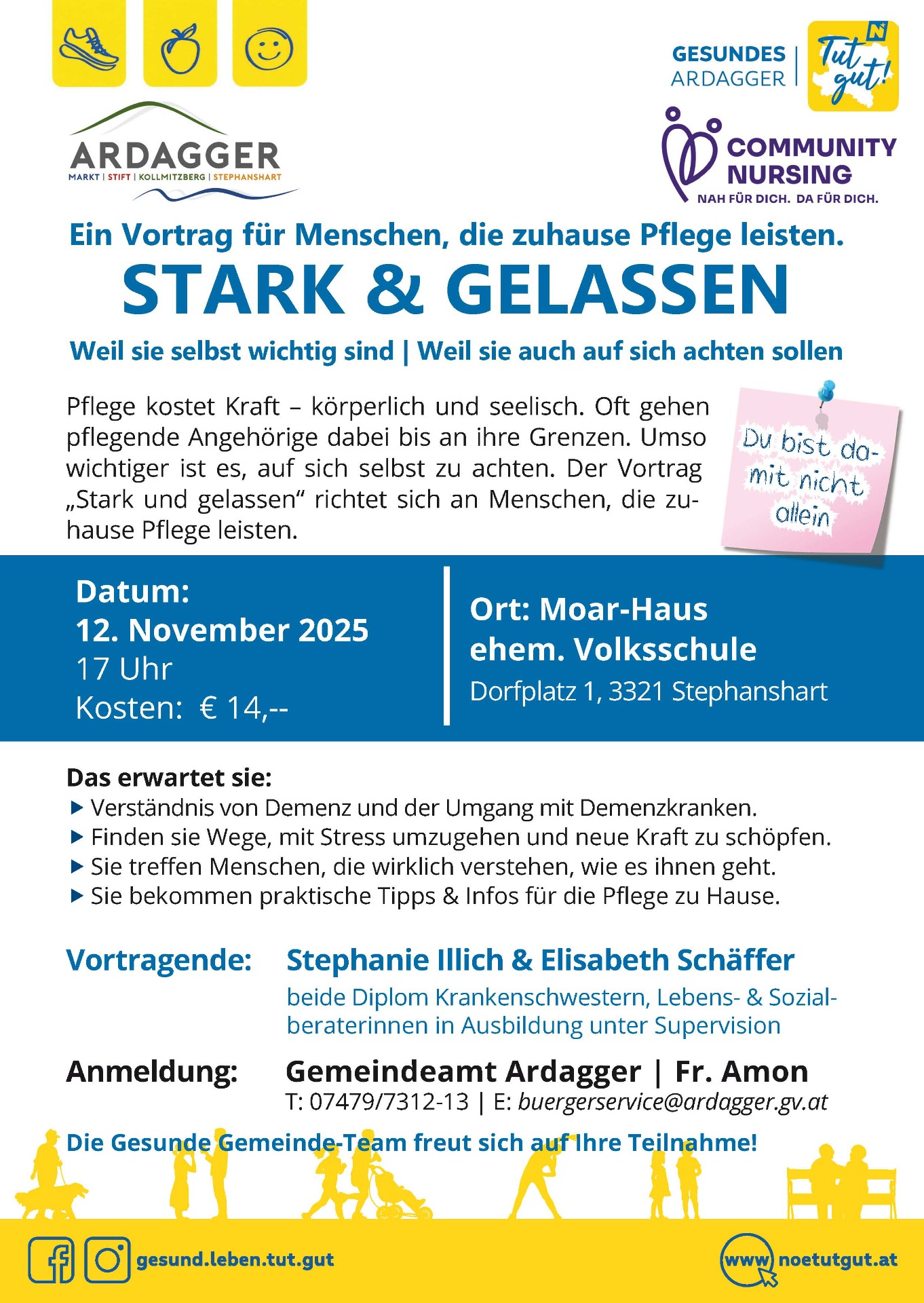 Die Gesunde Gemeinde Ardagger und die Gesunde Kleinregion Donau-Ybbsfeld lädt recht herzlich zu den kommenden Veranstaltungen ein. Siehe dazu beiliegende Flyer!