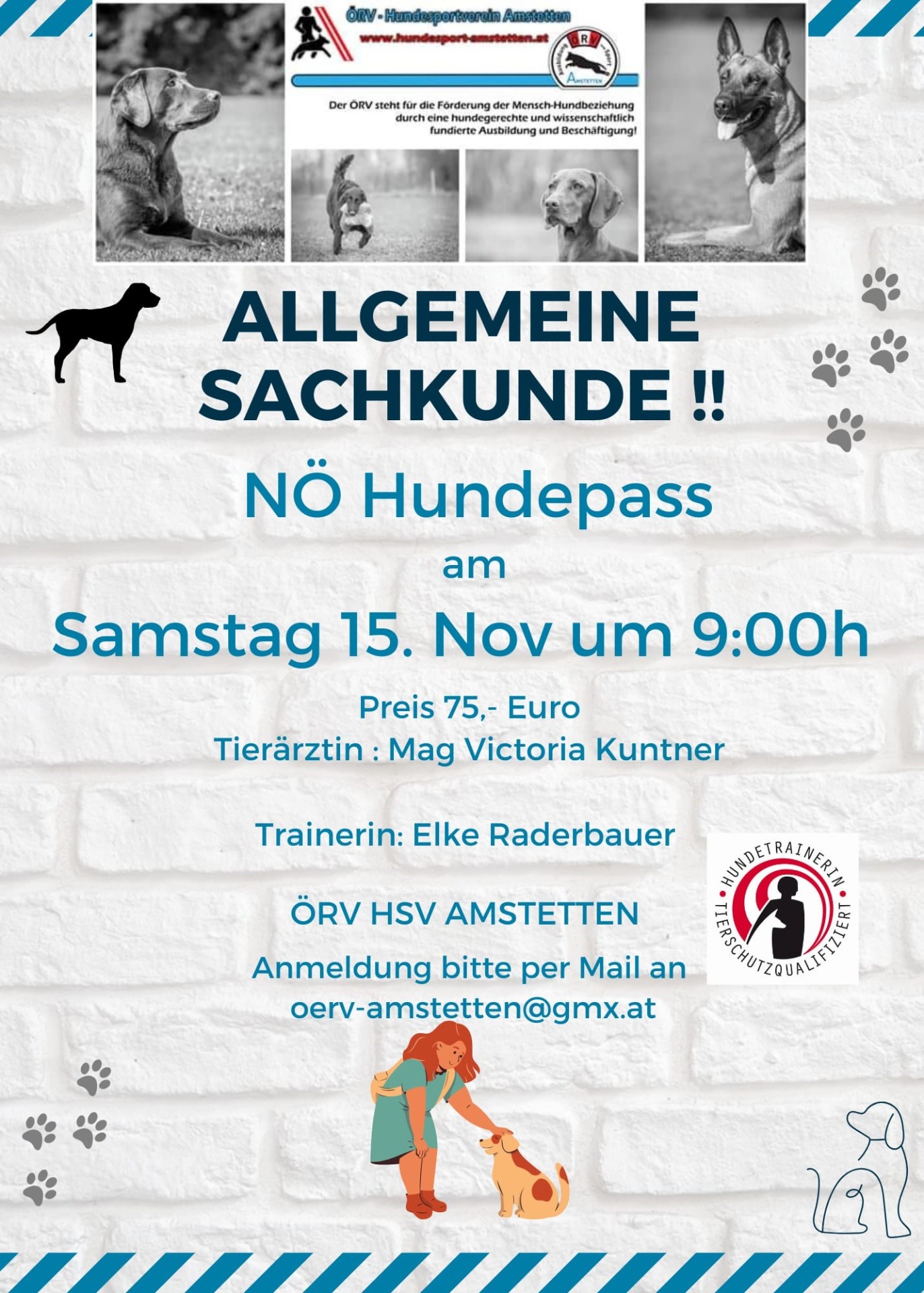 Wie Ihnen bestimmt bekannt ist, ist mit 1.6.2023 die Novelle des NÖ Hundehaltegesetzes in Kraft getreten. Unter anderem haben nunmehr alle Hundehalter, die ab 1.6.2023 einen Hund erwerben und anmelden den Nachweis der allgemeinen Sachkunde zu erbringen.