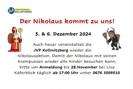 Wenn Sie im Bereich der KG Kollmitzberg wohnen und gerne möchten, dass der Nikolaus zu Ihren Kindern ins Haus kommt, dann melden Sie sich bitte an >> Kontakt siehe Flyer