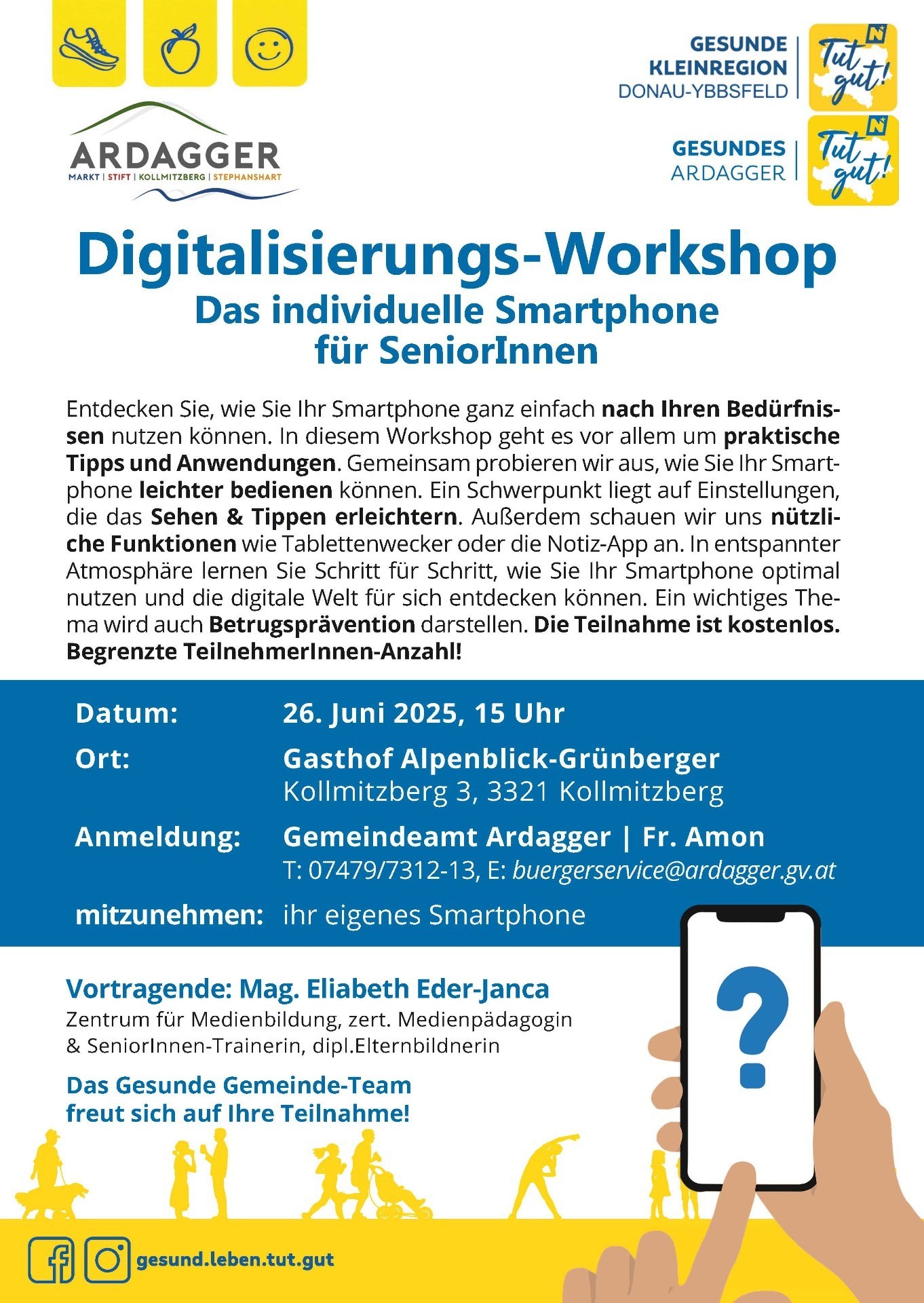 Entdecken Sie, wie Sie Ihr Smartphone ganz einfach nach Ihren Bedürfnissen nutzen können. In diesem Workshop geht es vor allem um praktische Tipps und Anwendungen. Gemeinsam probieren wir aus, wie Sie Ihr Smartphone leichter bedienen können. Ein Schwerpunkt liegt auf Einstellungen, die das Sehen & Tippen erleichtern. Außerdem schauen wir uns nützliche Funktionen wie Tablettenwecker oder die Notiz-App an. In entspannter Atmosphäre lernen Sie Schritt für Schritt, wie Sie Ihr Smartphone optimal nutzen und die digitale Welt für sich entdecken können. Ein wichtiges Thema wird auch Betrugsprävention darstellen. Die Teilnahme ist kostenlos. Begrenzte TeilnehmerInnen-Anzahl!