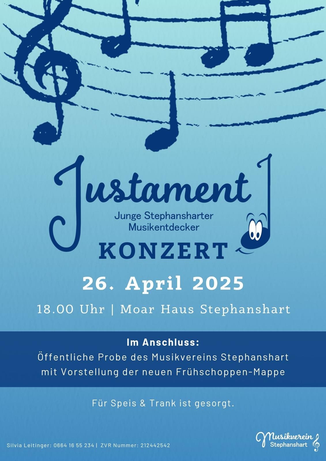 Die Jungen Stephansharter Musikentdecker - Justament - laden am 26.04.2025 herzlich zum Konzert beim Stephansharter Moarhaus ein. Schlager, Polkas und Filmmusik - das Programm ist bunt gemischt.