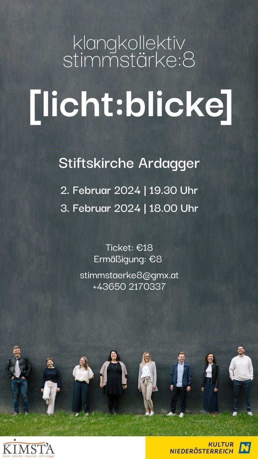 Im kleinen Rahmen besingen und bespielen die Musiker:innen des Klangkollektivs Stimmstärke:8 unterschiedliche Räume in der Stiftskirche Ardagger. Ob Krypta, Kreuzgang oder die Hauptkirche - jeder Raum besitzt seine eigene Lichtstimmung und Klangfarbe. Um diese Individualität musikalisch erfahrbar zu machen, wandern die Musiker:innen in Begleitung des Publikums von Raum zu Raum, und versuchen die dort wirkende Atmosphäre klanglich einzufangen. Licht ist die Essenz unseres Seins. Es bestimmt die Abläufe der Natur und gestaltet maßgeblich unseren Lebensrhythmus. Stimmstärke:8 versucht dies mittels verschiedener musikalischer und performativer Ausdrucksformen dem Publikum gefühlvoll wiederzugeben. Das Programm bewegt sich von alpenländischen und nordischen Klängen über A Cappella – Musik vom gregorianischen Choral bis hin zu Eigenkompositionen vielfältigster Stile sowie Besonderheiten der Popularmusik aus dem 20. Jahrhundert. Begrenzte Ticketanzahl von 50 Personen pro Konzert Tickets erhältlich bei allen Musiker:innen von stimmstärke 8, unter 0650 2170337 sowie via Mail unter: stimmstaerke8@gmx.atLichtstimmung und Klangfarbe in der Stiftskirche