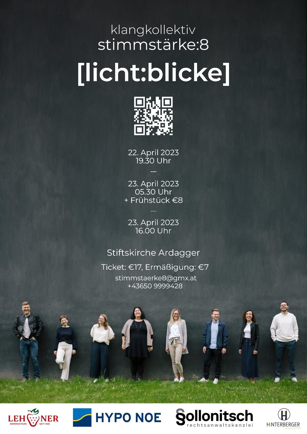 Im kleinen Rahmen besingen und bespielen die Musiker:innen des Klangkollektivs Stimmstärke:8 unterschiedliche Räume in der Stiftskirche Ardagger. Ob Krypta, Kreuzgang oder die Hauptkirche - jeder Raum besitzt seine eigene Lichtstimmung und Klangfarbe. Um diese Individualität musikalisch erfahrbar zu machen, wandern die Musiker:innen in Begleitung des Publikums von Raum zu Raum, und versuchen die dort wirkende Atmosphäre klanglich einzufangen. Licht ist die Essenz unseres Seins. Es bestimmt die Abläufe der Natur und gestaltet maßgeblich unseren Lebensrhythmus. Stimmstärke:8 versucht dies mittels verschiedener musikalischer und performativer Ausdrucksformen dem Publikum gefühlvoll wiederzugeben. Das Programm bewegt sich von alpenländischen und nordischen Klängen über A Cappella – Musik vom gregorianischen Choral bis hin zu Eigenkompositionen vielfältigster Stile sowie Besonderheiten der Popularmusik aus dem 20. Jahrhundert.Kirchenkonzert