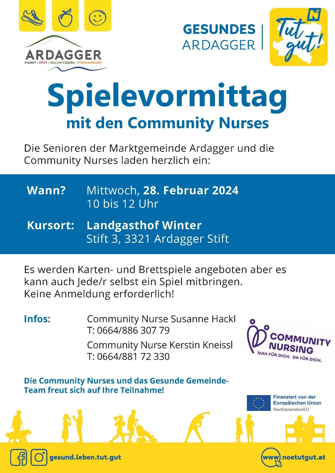 Die Senioren der Marktgemeinde Ardagger und die Community Nurses laden herzlich ein.