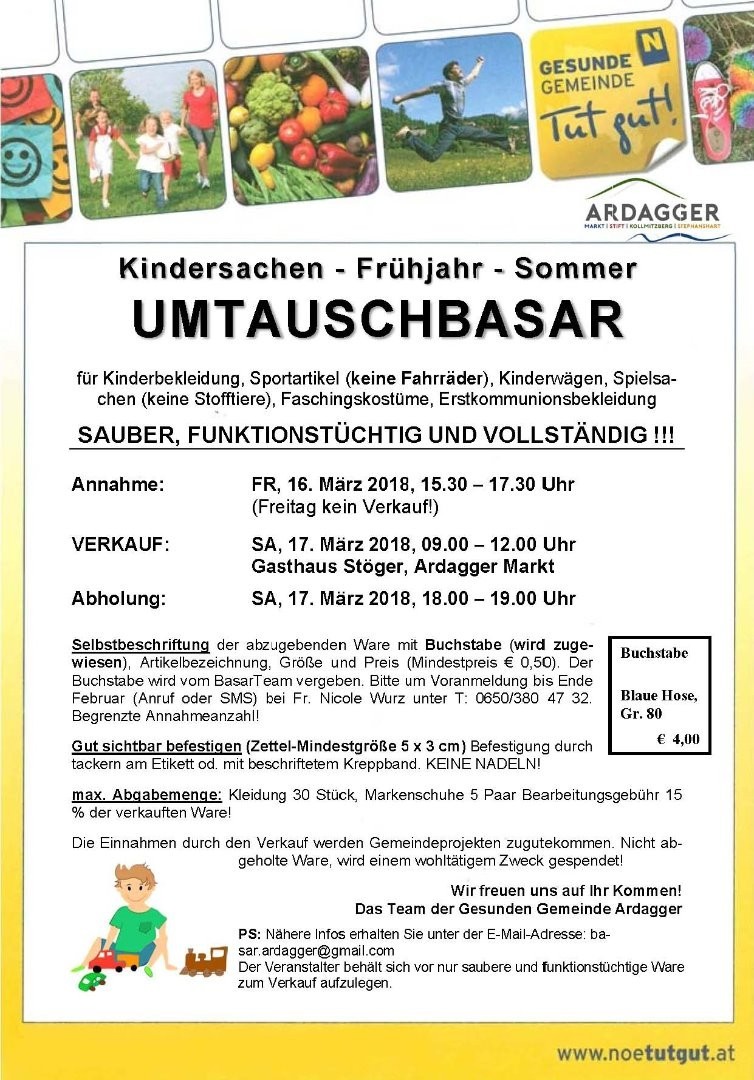 Frühjahr - Sommer Umtauschbasar für Kinderkleidung, Kinderwagen, Sportartikel (Fahrräder), Spielsachen, Erstkommunionskleidung