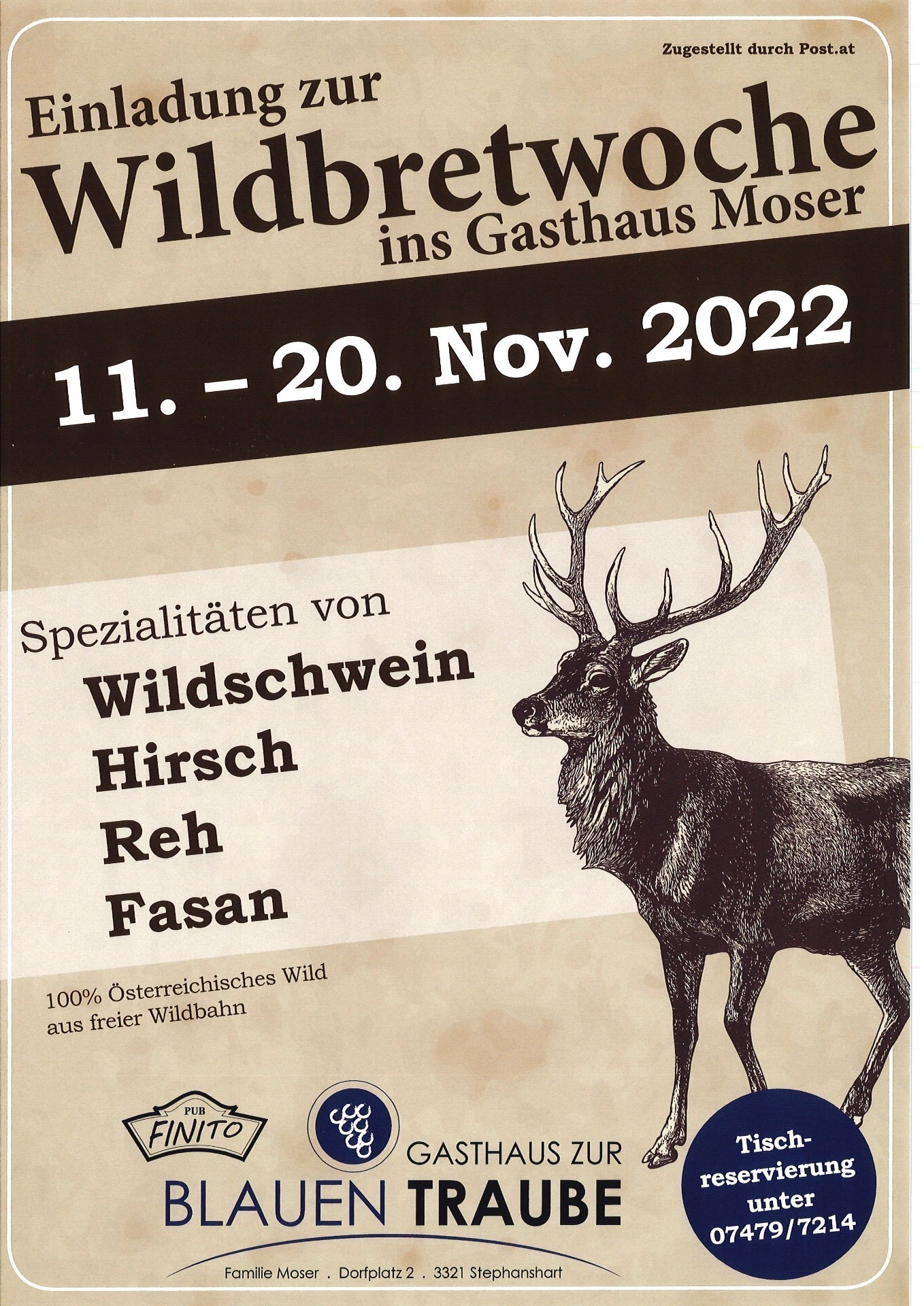 Spezialitäten vom Hirsch, Wildschwein, Reh und Fasan aus 100% freier Wildbahn